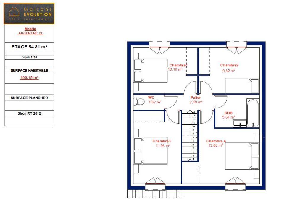 Cette maison à construire, sur 2 niveaux, prévoit :