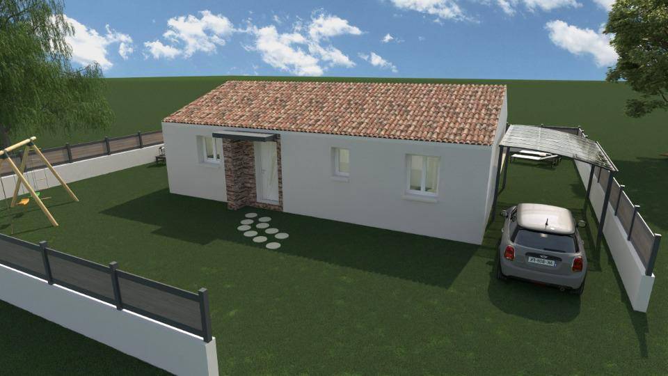 Conçue de plain-pied, elle se divise en trois chambres, une cuisine et une salle de bains. Cette maison est neuve.