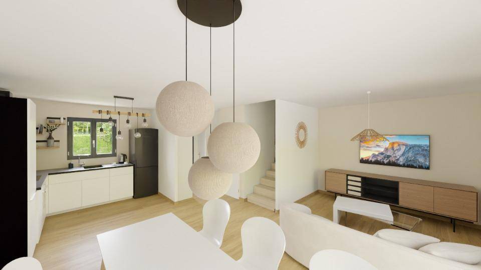 Nous avons imaginé pour vous ce projet avec un modèle type 4 à étage de 77 m² composé au rez-de-chaussée d'un bel espace de vie d'un cellier et d'un WC indépendant et à l'étage, de 3 chambres et une salle de bain avec WC. Possibilité de garage en sus.