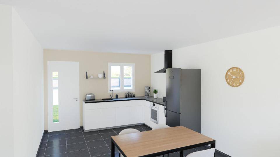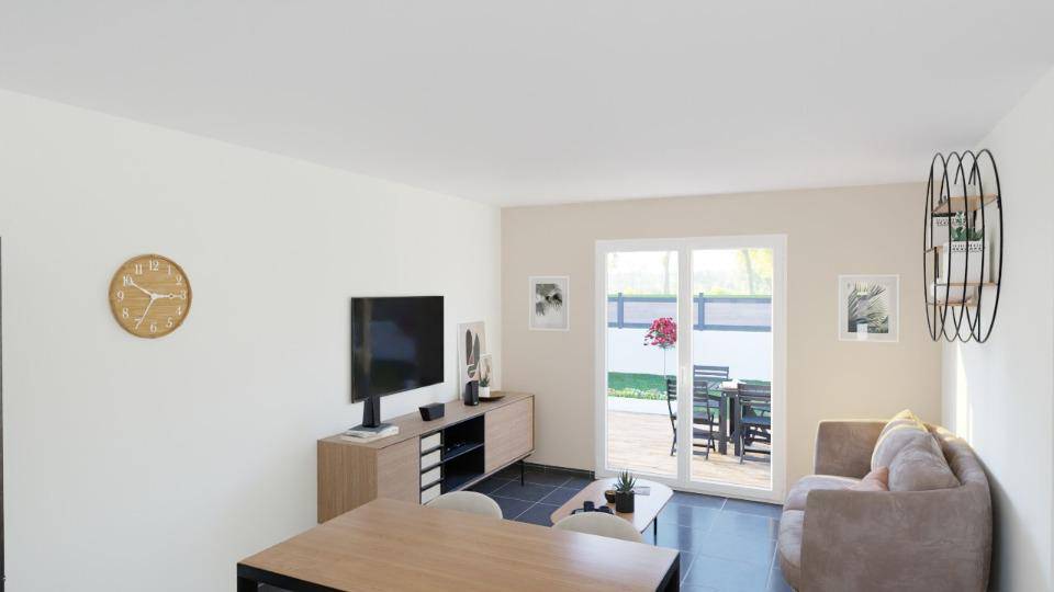 Nous avons imaginé pour vous ce projet avec un modèle plain pied type 3 de 49 m2 composé d'un bel espace de vie avec cuisine ouverte, 2 chambres et une salle de bain avec WC.
