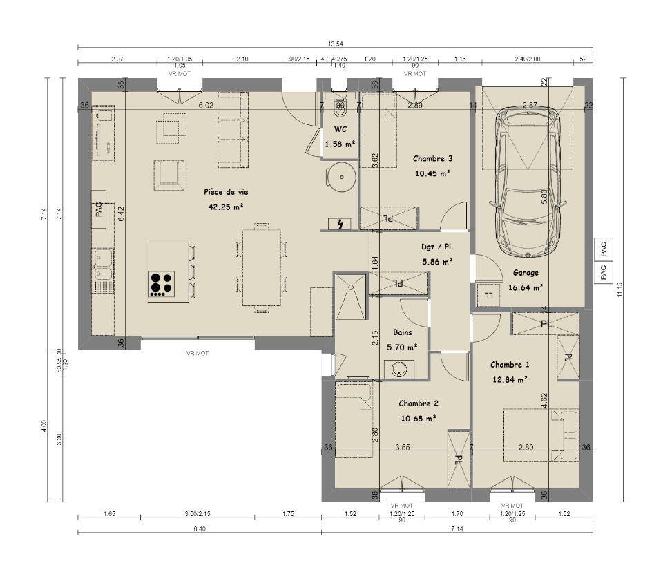 Venez construire avec Natacha de Maisons France Confort cette jolie maison de 89m² composée de trois chambres, une pièce de vie avec sa cuisine ouverte. Un garage intégré complète également cette maison.