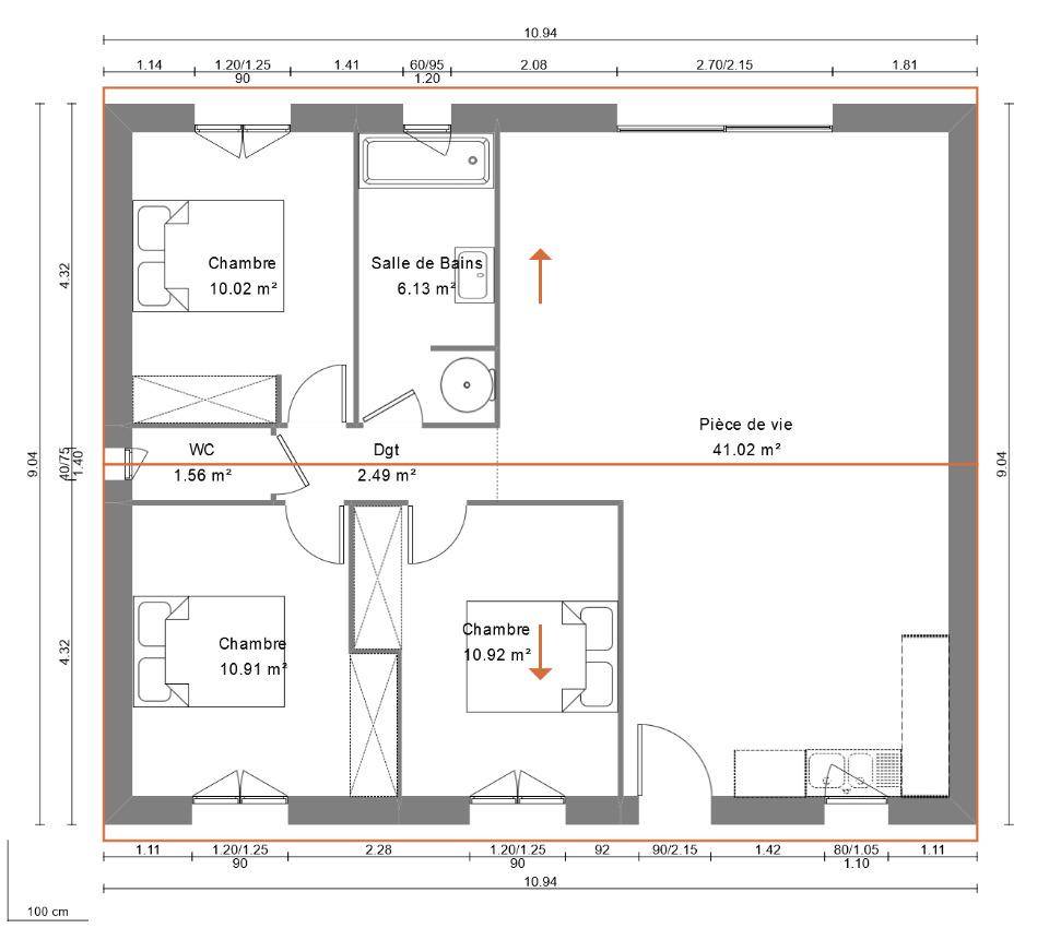 - Une surface habitable optimisée avec 4 pièces : une grande pièce de vie lumineuse avec cuisine ouverte, 3 chambres confortables, une salle de bain moderne, et des toilettes indépendantes