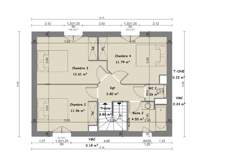 Il s'agit d'une maison de 2 niveaux. Elle est neuve.