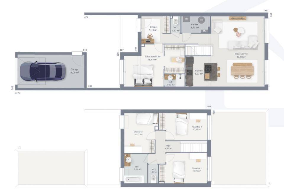 TERRAIN ET MAISONUne architecture moderne, des lignes pures et un équilibre parfait entre esthétique et fonctionnalité.Cette maison contemporaine à toit plat s’adapte idéalement aux terrains à petite façade tout en offrant un espace de vie spacieux et lumineux, ouvert sur le jardin.Au rez-de-chaussée, une suite parentale avec salle d’eau privative apporte confort et intimité, tandis que le cellier et le garage attenant facilitent le quotidien.À l’étage, trois chambres harmonieuses, une salle de bain élégante et un espace détente modulable créent un univers à la fois fonctionnel et chaleureux.Chaque détail a été pensé pour optimiser l’espace, valoriser la lumière naturelle et offrir un confort durable, dans le respect des exigences RE2020.Une maison au design affirmé, pensée pour ceux qui recherchent l’équilibre entre modernité, confort et qualité de vie.Un projet de construction ou de rénovation ?Contactez Yannick POINCLOUXMaisons de Manon Sainte-Maxime4 avenue de Lattre de Tassigny – 83120 Sainte-MaximeTél : (Numéro supprimé)Annonce proposée par un Agent Commercial Partenaire.