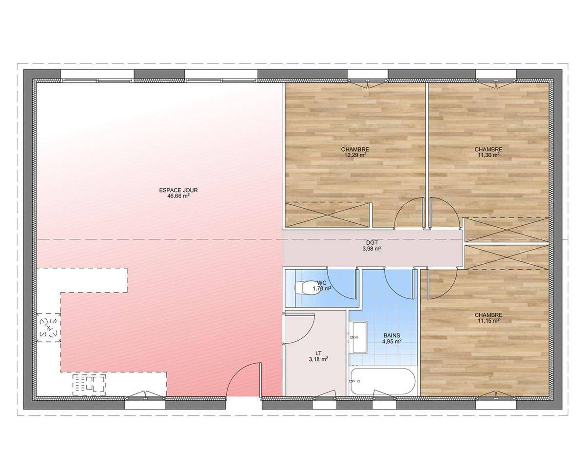 Prix avec assurance dommages-ouvrage comprise, hors VRD, terrain viabilisé, frais de notaire non compris, frais divers non compris. Terrain sélectionné et vu pour vous sous réserve de disponibilité et au prix indiqué par notre partenaire foncier. Non mandaté pour la vente du terrain. Visuels non contractuels.