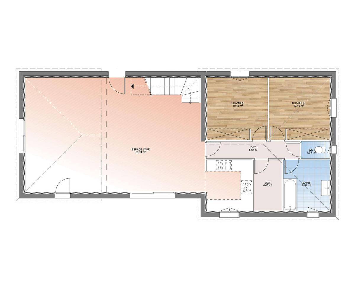 Prix avec assurance dommages-ouvrage comprise, hors VRD, terrain viabilisé, frais de notaire non compris, frais divers non compris. Terrain sélectionné et vu pour vous sous réserve de disponibilité et au prix indiqué par notre partenaire foncier. Non mandaté pour la vente du terrain. Visuels non contractuels.