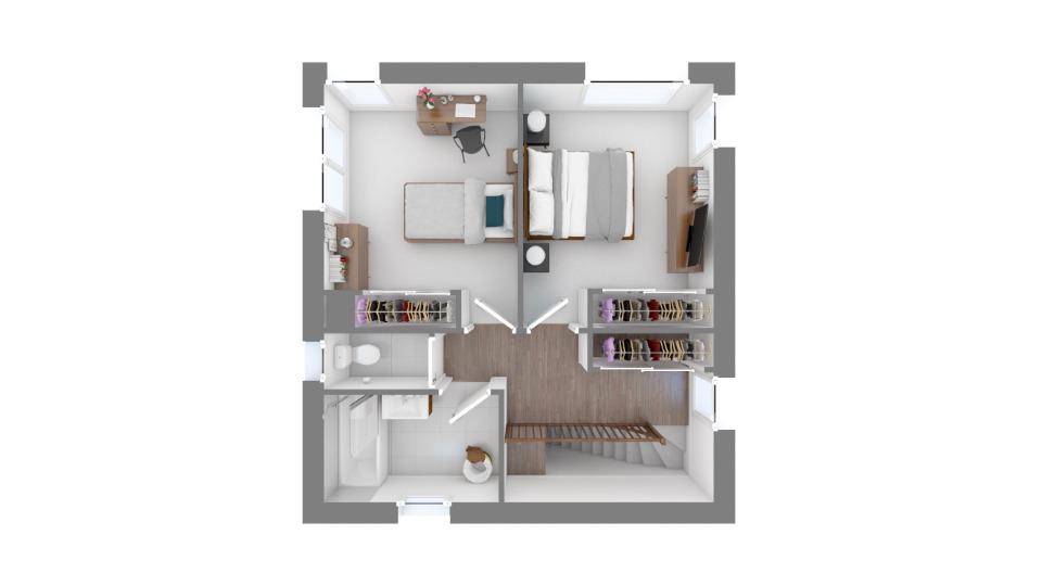 L'étage partiel comprend 2 chambres et une salle de bain.