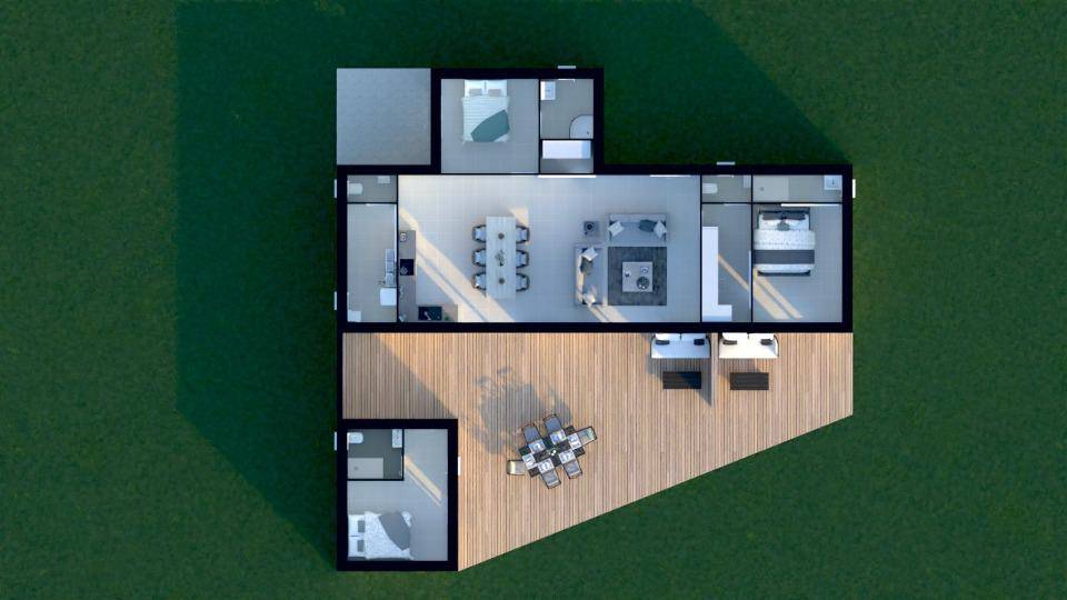 Proposition de villa contemporaine comprenant 3 suites dont une indépendante, 3 terrasses, cellier et pièce de vie de 60m².