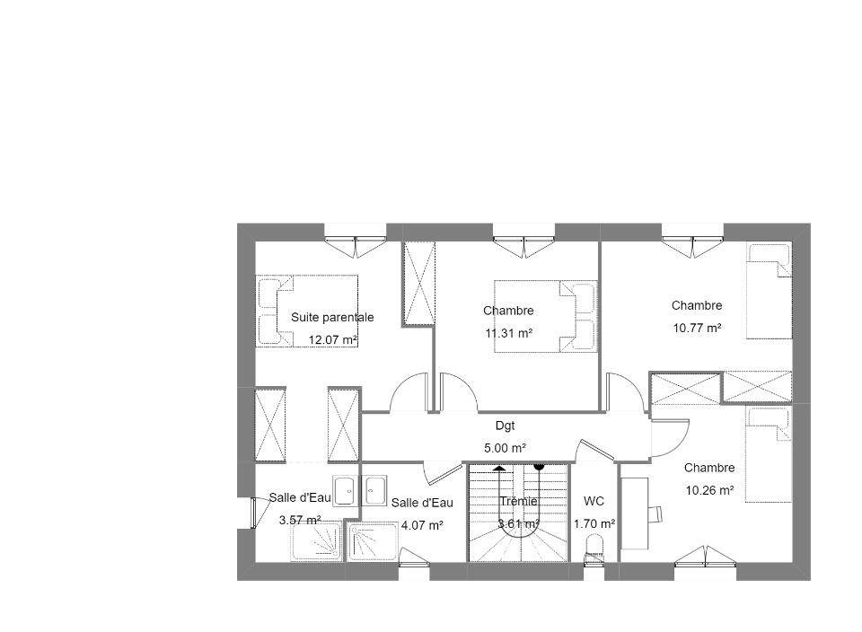 Vous y trouverez également de belles prestations tels que la climatisation sur l'ensemble de la maison, les volets roulants électriques, les menuiseries couleur anthracite, un pack domotique, une isolation renforcée et la possibilité d'y ajouter un garage.