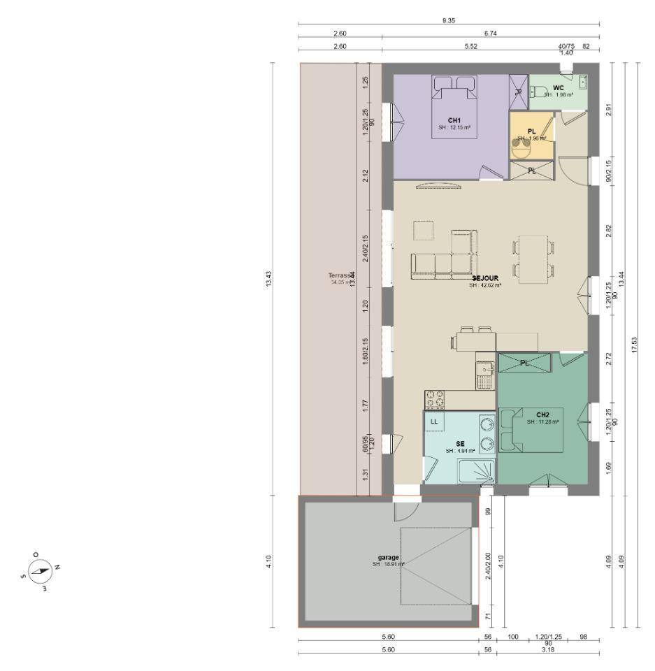 Villa de plain pied 76m2 + garage de 19m2 accolé