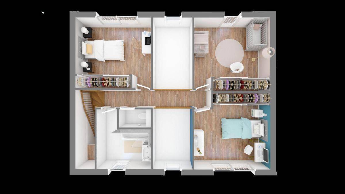 Prix avec assurance dommages-ouvrage comprise, hors VRD, terrain viabilisé, frais de notaire non compris, frais divers non compris. Terrain sélectionné et vu pour vous sous réserve de disponibilité et au prix indiqué par notre partenaire foncier. Non mandaté pour la vente du terrain. Visuels non contractuels.