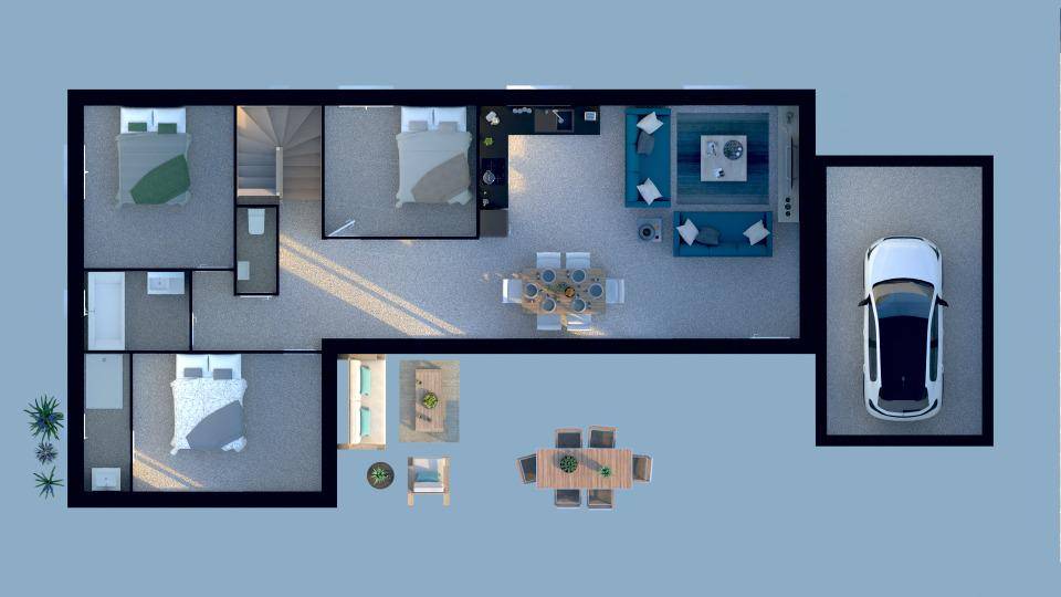 3 chambres et 2 salles de bain, WC séparés, une grande pièce de vie orientée vers la terrasse