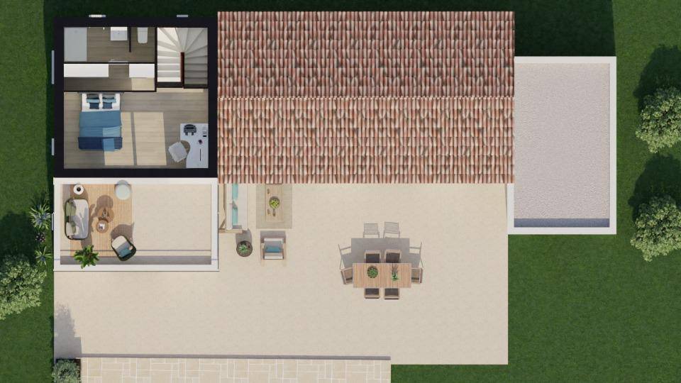 Adapté au terrain de 3000m², l'ensemble est présenté à 570 000€.