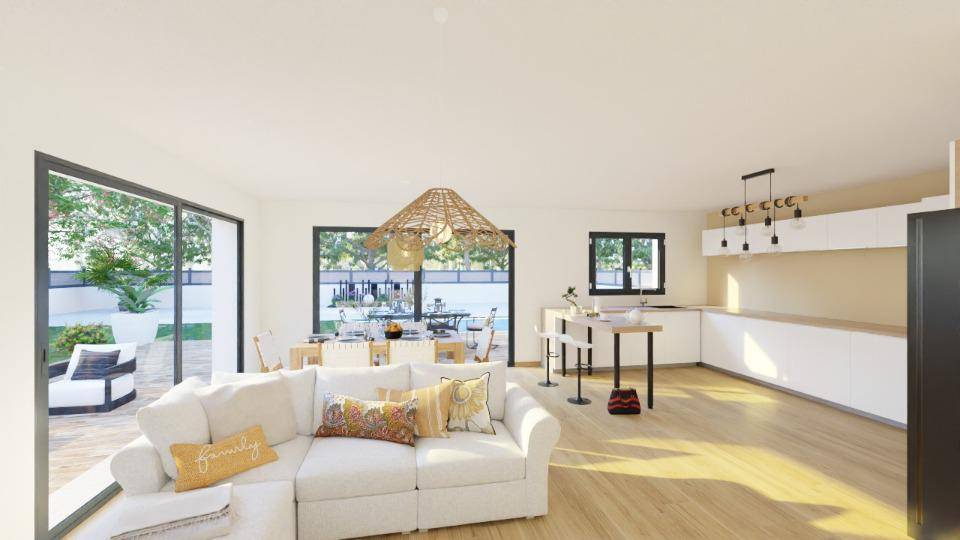 Nous avons imaginé pour vous ce projet avec un modèle plain pied de type 5 de 100 m² composé d'un bel espace de vie, d'un cellier, de 3 chambres dont une suite parentale avec salle d'eau, d'une salle de bain, d'un WC indépendant ainsi que d'un garage.