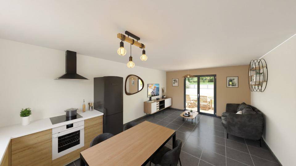 Nous avons pensé pour vous ce modèle plain pied type 4 de 64 m² composé d'une pièce de vie avec cuisine ouverte, 3 chambres, une salle de bain et un WC séparé. Possibilité de garage en sus.