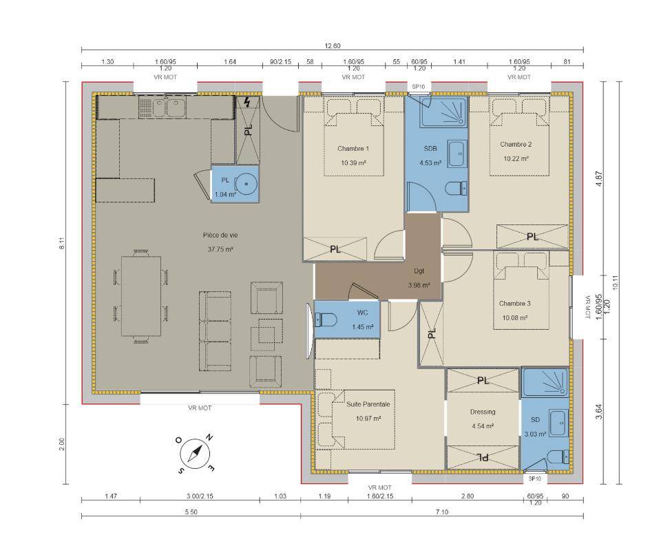 TERRAIN ET MAISONLaissez-vous séduire par cette maison contemporaine à demi-étage, pensée pour conjuguer design, fonctionnalité et confort de vie au quotidien.Dès l’entrée, un hall accueillant vous plonge dans une atmosphère chaleureuse et moderne. L’espace se prolonge sur un vaste séjour lumineux, ouvert sur le jardin grâce à trois grandes baies vitrées qui inondent la pièce de lumière naturelle. La cuisine ouverte, parfaitement intégrée, crée un espace de vie fluide et convivial de plus de 50 m².Au rez-de-chaussée, vous bénéficiez d’un véritable espace nuit parental, avec une belle suite composée d’une chambre spacieuse, d’un dressing et d’une salle d’eau privative. Un espace intime, isolé du reste de la maison, idéal pour les parents en quête de calme.Le demi-niveau supérieur accueille deux chambres confortables, toutes bien agencées, ainsi qu’une salle de bain familiale avec baignoire et douche selon vos envies.Contactez-nous au (Numéro supprimé).Frais de notaire non compris.Cette annonce a été créée et diffusée avec le logiciel VITAHOME.