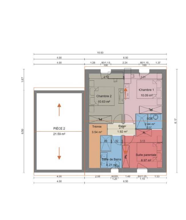 Il s'agit d'une maison de 2 niveaux. Son intérieur compte trois chambres, une cuisine et une salle de bains. La maison est neuve.