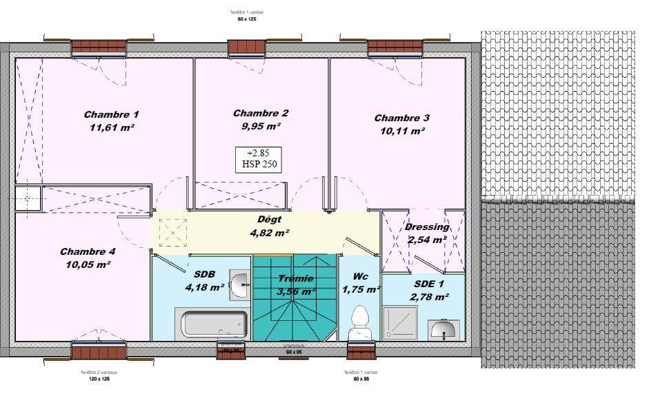 D'une surface habitable de 120 m² ce modèle sépare sur 2 niveaux le coin jour et le coin nuit,