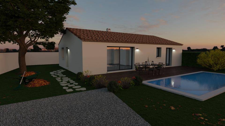 TERRAIN ET MAISONDans un quartier résidentiel paisible, cette maison de plain-pied vous séduira par sa fonctionnalité et son atmosphère chaleureuse. L’entrée, protégée par un porche couvert, ouvre sur une vaste pièce de vie baignée de lumière, intégrant une cuisine ouverte, idéale pour partager de beaux moments en famille.L’espace nuit comprend trois chambres avec placards, une salle de bains bien agencée et des toilettes indépendantes. Pratique au quotidien, la maison dispose également d’un cellier et d’un garage attenant.Construite dans le respect des dernières normes environnementales, cette maison affiche un DPE A, gage de confort thermique optimal et de faibles dépenses énergétiques.Un bien alliant modernité, praticité et performance, parfait pour une vie sereine au quotidien.Contactez-nous au (Numéro supprimé).Frais de notaire non compris.Cette annonce a été créée et diffusée avec le logiciel VITAHOME.