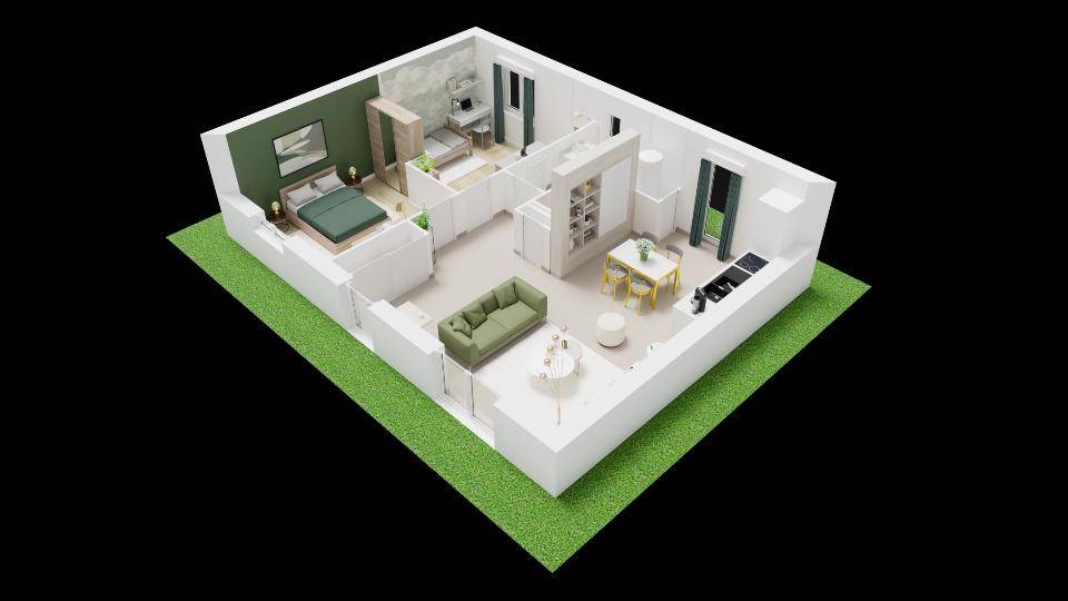 Projet proposé de 60 m² de plain pied avec 2 chambres à partir de 279000€