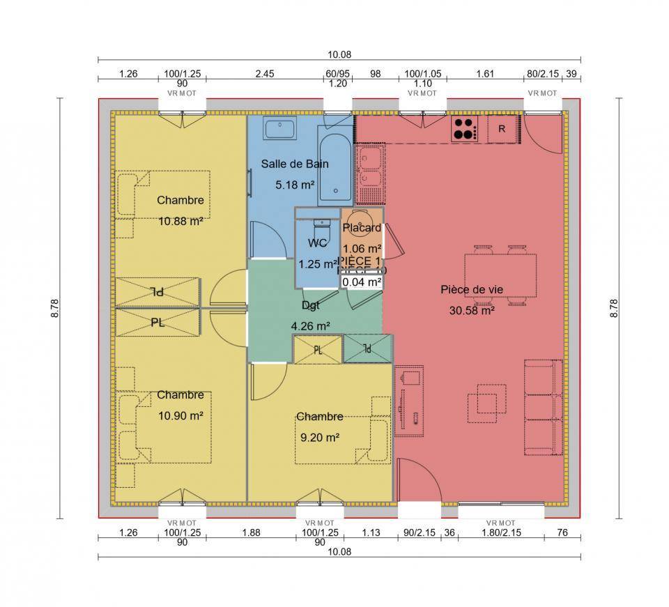 TERRAIN ET MAISONDécouvrez cette charmante maison de plain-pied au plan optimisé, alliant confort, modernité et évolutivité. Parfaitement pensée pour une vie agréable au quotidien, elle offre une surface habitable intelligemment agencée autour d’un espace de vie lumineux de 23,91 m², comprenant un séjour convivial et une cuisine ouverte. De larges ouvertures assurent une belle luminosité naturelle tout au long de la journée.Côté nuit, deux chambres douillettes de 10,04 m² et 10,12 m² vous offrent un espace de repos chaleureux et intime. Une salle d’eau moderne de 4,56 m², équipée d’une douche, complète cet espace, accessible via un dégagement optimisé pour minimiser la perte de place.Un grand garage de 18,09 m² communique directement avec l’intérieur, facilitant les accès et offrant un espace de rangement appréciable.Le vrai plus ? Cette maison est évolutive ! Son implantation permet facilement d’envisager une extension (chambre supplémentaire, bureau, pièce de loisirs…), pour s’adapter à vos projets futurs.Ne manquez pas cette opportunité de personnaliser votre futur chez-vous selon vos goûts et besoins ! Contactez votre conseiller en construction Olivier PUAUX (Numéro supprimé) dès aujourd’hui pour plus d’informations.