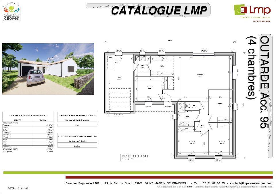 En vente : à 9 km de la côte atlantique et à deux pas de La Roche-sur-Yon et de jard sur mer , LMP Constructeur Angles vous propose, idéalement située dans Avrillé (85440), cette maison de 5 pièces de plain-pied de 95 m².