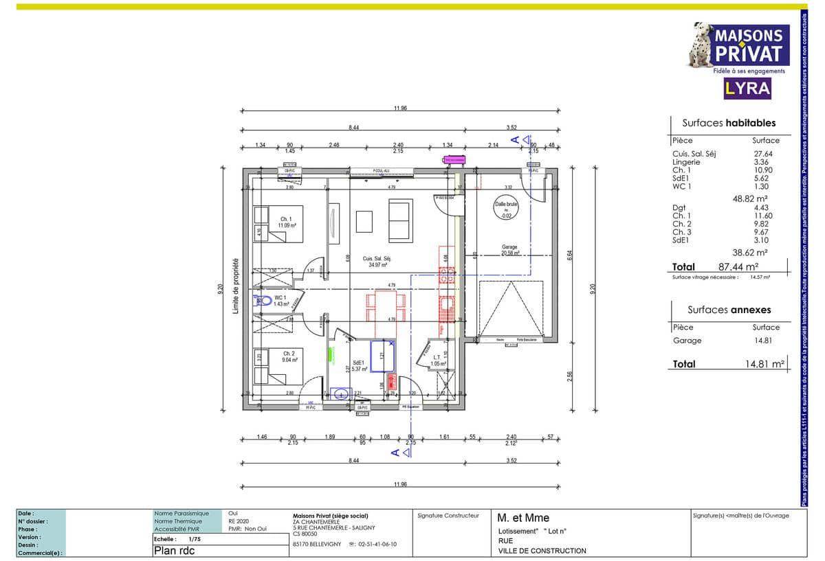 A MACHE sur un terrain de 350 m², Alliance Construction vous propose de réaliser votre projet de construction de maison individuelle d'une surface de 87.91 m² habitables avec 3 chambres, à partir de 218154€*Demandez une étude gratuite et personnalisée de votre projet de construction !* Cette offre comprend :- Garanties constructeurs (dommages ouvrage, garantie de prix ferme et définitif, garantie de livraison, responsabilité civile et décennale).- Branchements aux compteurs et accès empierré sur 5m linéaires.Habitez une maison spécialement pensée et conçue pour vous et votre famille, prête à décorer, adaptée à vos modes de vie, personnalisée selon vos goûts grâce à un large choix d'options, de matériaux et d'innovations !Contactez Sylvain CARIOU au (Numéro supprimé) (Alliance Construction – Agence de la Roche-sur-Yon).*Prix indicatif pour un projet de construction d'une maison individuelle. Ne sont pas inclus les frais de branchements, raccordements aux réseaux publics, frais d'adaptations, aménagements intérieurs et extérieurs et options. terrain viabilisé, frais de notaire non compris, frais divers non compris. Garanties et assurances obligatoires incluses. Terrain sélectionné par ALLIANCE auprès de nos partenaires fonciers, selon disponibilité, pour la construction d'une maison neuve. Non mandaté pour réaliser la vente (loi du 2 janvier 1970 n°70-9). Visuels non contractuels. Voir détails en agence.Cette annonce a été créée et diffusée avec le logiciel VITAHOME.