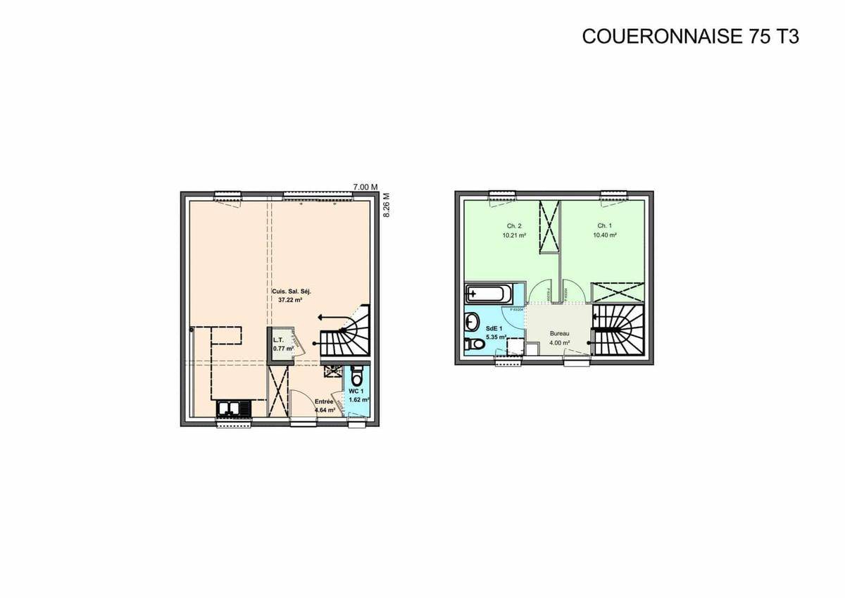 TERRAIN ET MAISONSur ce terrain, nous vous proposons cette maison neuve : la Coueronnaise, une maison traditionnelle à étage de charme. Conçue par Maisons Privat, constructeur centenaire avec les meilleurs avis clients de la région, cette habitation de 75 m² est idéale pour une famille à la recherche de confort et de modernité.La Coueronnaise vous séduira par son architecture traditionnelle et sa façade décrochée. Cette maison familiale dispose de deux chambres spacieuses et d’une salle de bains supplémentaire, offrant ainsi tout le confort nécessaire pour une vie agréable. La salle de bains principale est équipée d’une douche italienne, et les baies coulissantes apportent une luminosité exceptionnelle au séjour-cuisine-salon, créant un espace de vie vaste et accueillant.Parmi les options les plus demandées par nos clients, vous pourrez choisir d’ajouter un garage accolé, des menuiseries en aluminium et un système de domotique pour une maison encore plus fonctionnelle et moderne.Cette maison neuve est basse consommation et conforme à la réglementation environnementale RE2020, garantissant ainsi des performances énergétiques optimales et un respect de l’environnement.Ne manquez pas cette opportunité unique de devenir propriétaire d’une maison alliant tradition et modernité, conçue par un constructeur de renom. Contactez-nous dès maintenant pour plus d’informations et pour visiter notre modèle Coueronnaise.