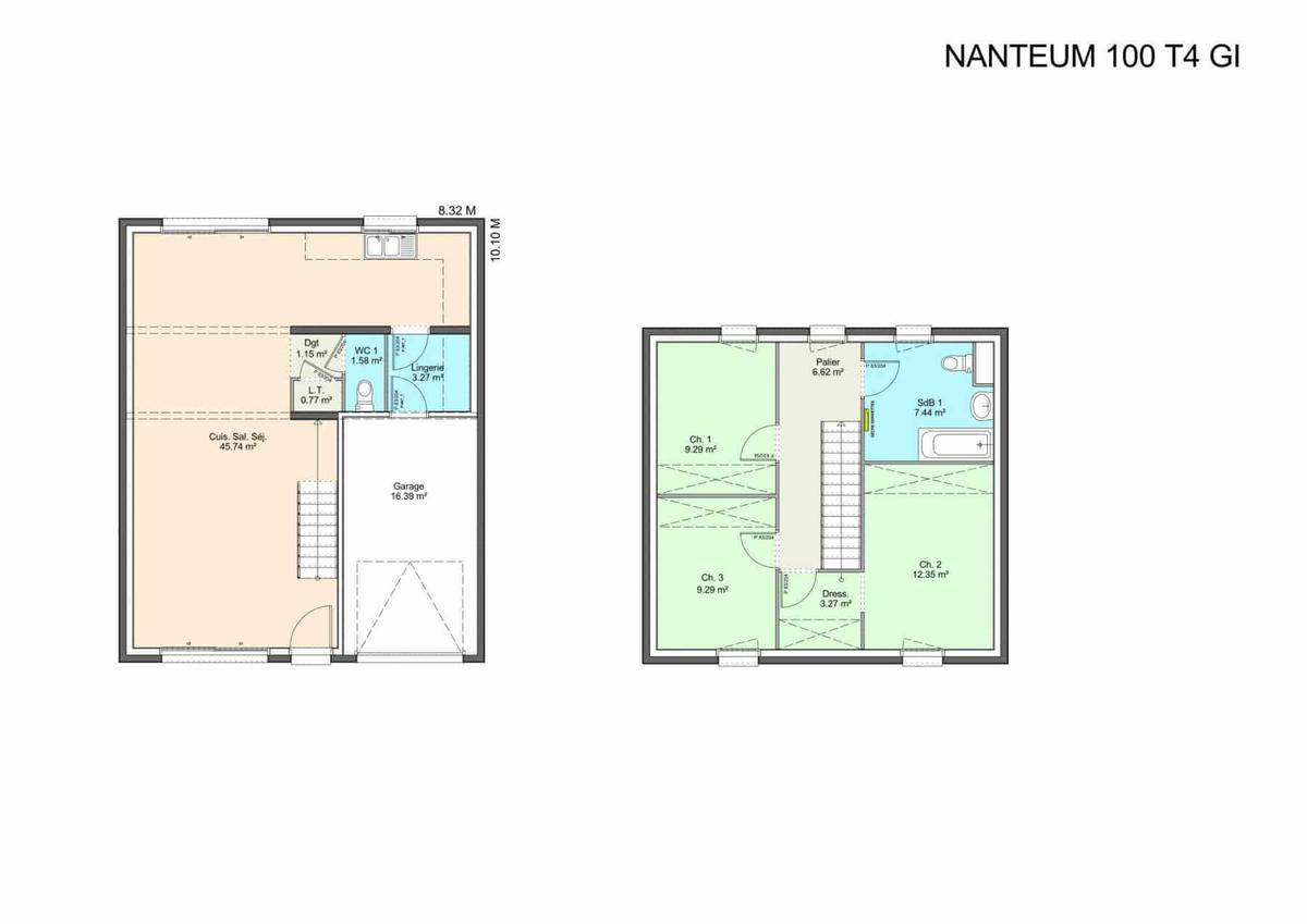 Sur ce terrain, nous vous proposons cette maison neuve : la Nanteum, une maison contemporaine de plain-pied très spacieuse. Le modèle Nanteum possède beaucoup d’atouts pour séduire les plus exigeants. Amoureux du style contemporain, vous serez conquis par cette demeure avec un style simple mais tellement efficace. Sa composition est étudiée pour offrir un confort maximum. Cette maison a de plus, une largeur de façade réduite ce qui la rend idéale en milieu urbain sur un terrain étroit.