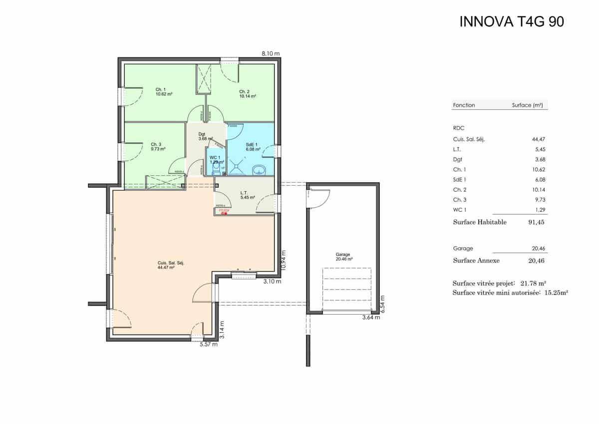 L'INNOVA, le rêve d’une maison unique réalisable, se distingue par ses 4 chambres et ses 4 pièces principales. Vous y trouverez un porche accueillant, un garage accolé et un plancher chauffant, l'une des options les plus demandées par nos clients.
