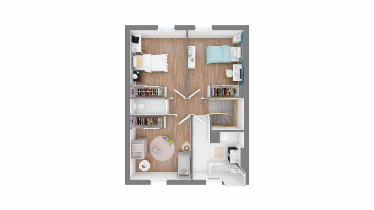 Achetez votre nouvelle demeure à étage comme vous la souhaitez et profitez d'un grand espace de vie avec cuisine ouverte, parfait pour des moments conviviaux en famille ou entre amis. La Clissonnaise est disponible dans des dimensions allant de 70 à 110 m², permettant de nombreuses configurations en fonction de vos besoins.