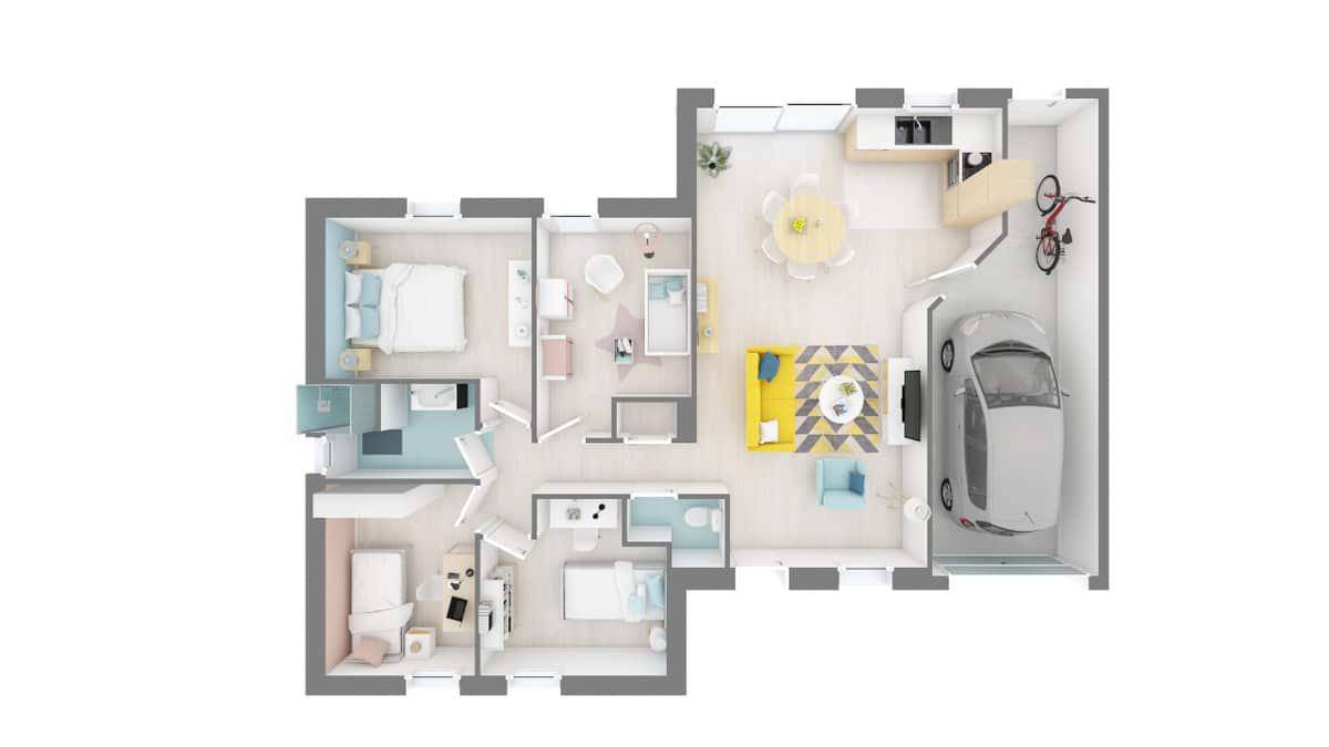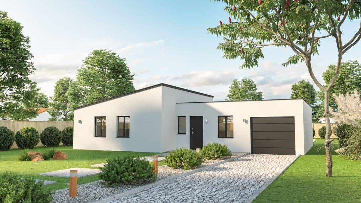 TERRAIN ET MAISONSur ce terrain, nous vous proposons cette superbe maison de plain-pied, alliant confort, modernité et praticité, idéale pour une famille en quête de bien-être.Avec son agencement optimisé, cette maison vous offre une spacieuse pièce de vie baignée de lumière naturelle, comprenant un séjour convivial et une cuisine ouverte fonctionnelle, parfaite pour des moments en famille ou entre amis.L’espace nuit se compose de trois belles chambres offrant confort et sérénité, d’une salle d’eau moderne et de WC séparés pour plus de praticité.Un garage intégré vient compléter ce bien, idéal pour stationner un véhicule ou disposer d’un espace de rangement supplémentaire.