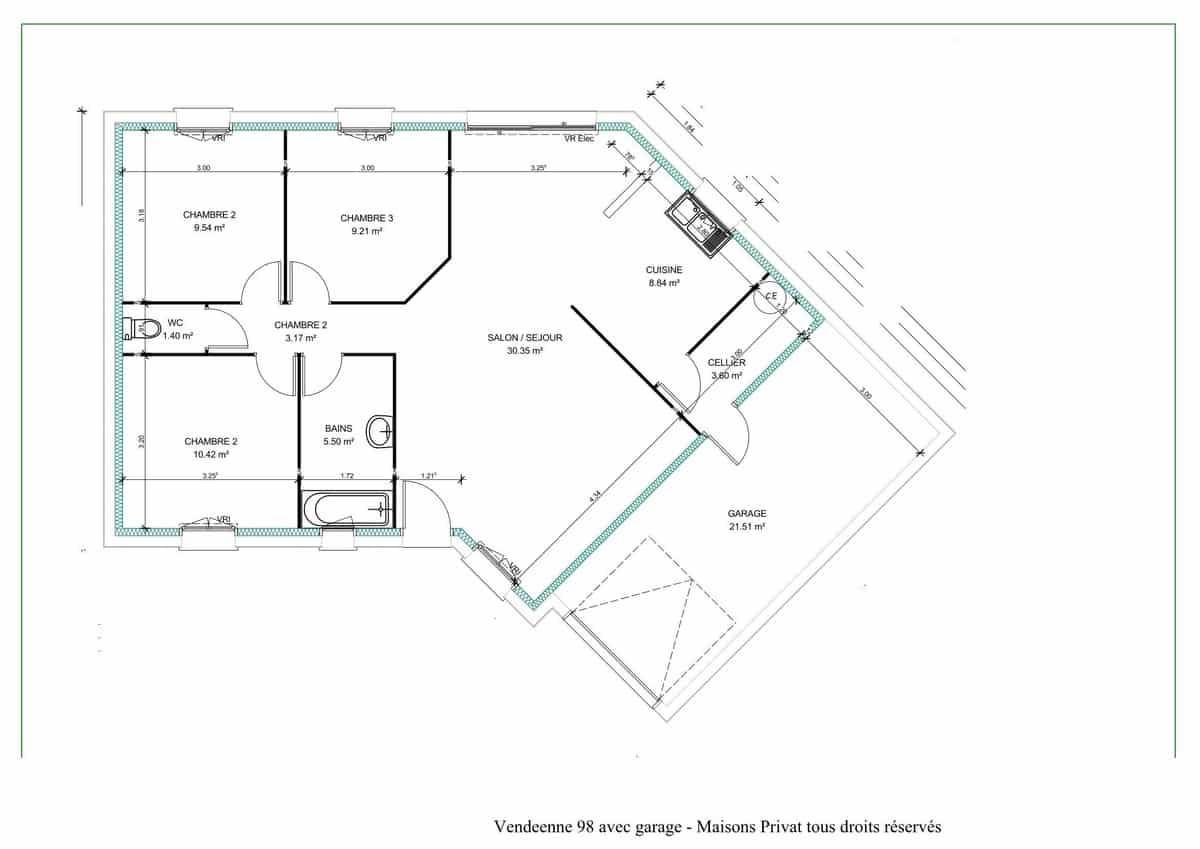 TERRAIN ET MAISONSur ce terrain, nous vous proposons cette maison neuve : la Vendéenne. Conçue par Maisons Privat, constructeur centenaire avec les meilleurs avis clients de la région, cette maison de 110 m² allie confort, modernité et économie d’énergie.La Vendéenne est une très belle maison de plain-pied avec un plan en V offrant tout l’équipement nécessaire à ses occupants. Elle séduit par sa belle prestance et sa toiture en tuile complexe. Cette maison familiale chaleureuse et bien pensée dispose de quatre confortables chambres, parfaites pour accueillir une famille nombreuse ou pour aménager un bureau à domicile.Vous profiterez également d’une salle de bains moderne et d’un vaste salon-séjour-cuisine agrémenté d’un cellier, idéal pour optimiser votre espace de rangement. Le garage intégré ajoute une touche de praticité supplémentaire, vous permettant de stationner votre véhicule en toute sécurité.La façade en V de la Vendéenne est orientée pour capter la lumière du soleil tout au long de la journée, garantissant une luminosité optimale et des économies d’énergie. Cette maison neuve est basse consommation et conforme à la RE2020, vous assurant ainsi un habitat respectueux de l’environnement et des factures énergétiques réduites.Les options les plus demandées par nos clients, telles que les menuiseries en aluminium et les volets roulants motorisés, sont également disponibles pour personnaliser votre maison selon vos préférences.Ne manquez pas cette opportunité unique d’accéder à la propriété avec la Vendéenne, une maison qui allie élégance, fonctionnalité et performance énergétique. Contactez-nous dès aujourd’hui pour plus d’informations et pour planifier une visite.