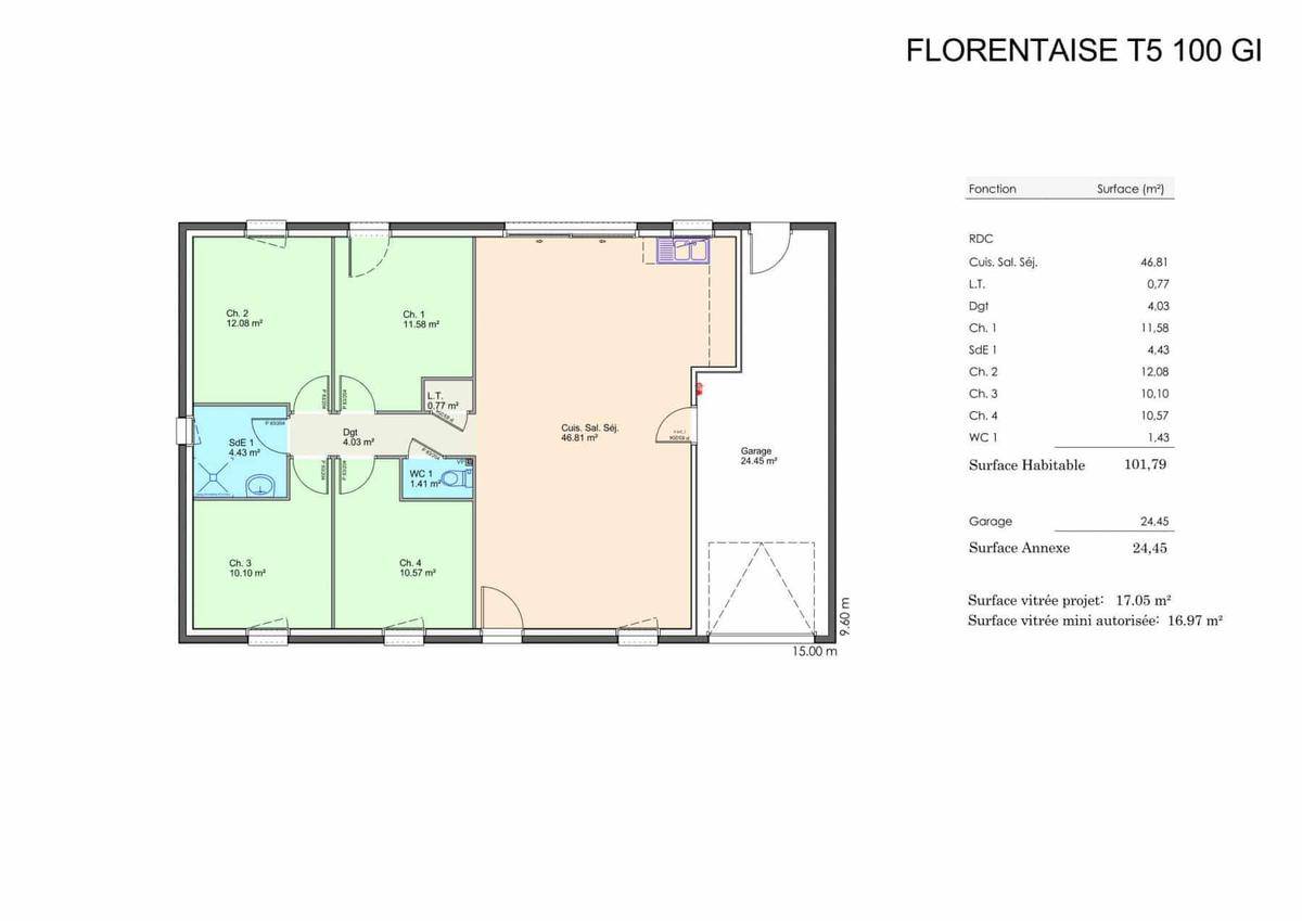 Les caractéristiques principales de cette maison incluent un garage intégré, une conception basse consommation et une cuisine ouverte. La Florentaise est conforme à la RE2020, garantissant une performance énergétique optimale et des économies sur vos factures d'énergie.