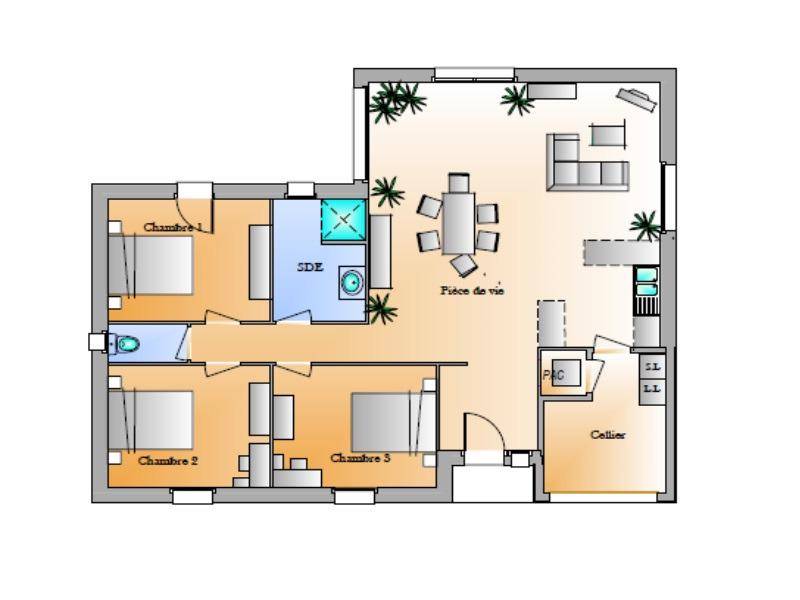 TERRAIN ET MAISONSur ce terrain, nous vous proposons cette superbe maison de plain-pied, alliant confort, modernité et praticité, idéale pour une famille en quête de bien-être.Avec son agencement optimisé, cette maison vous offre une spacieuse pièce de vie baignée de lumière naturelle, comprenant un séjour convivial et une cuisine ouverte fonctionnelle, parfaite pour des moments en famille ou entre amis.L’espace nuit se compose de trois belles chambres offrant confort et sérénité, d’une salle d’eau moderne et de WC séparés pour plus de praticité.Un garage intégré vient compléter ce bien, idéal pour stationner un véhicule ou disposer d’un espace de rangement supplémentaire.