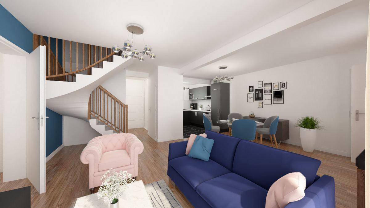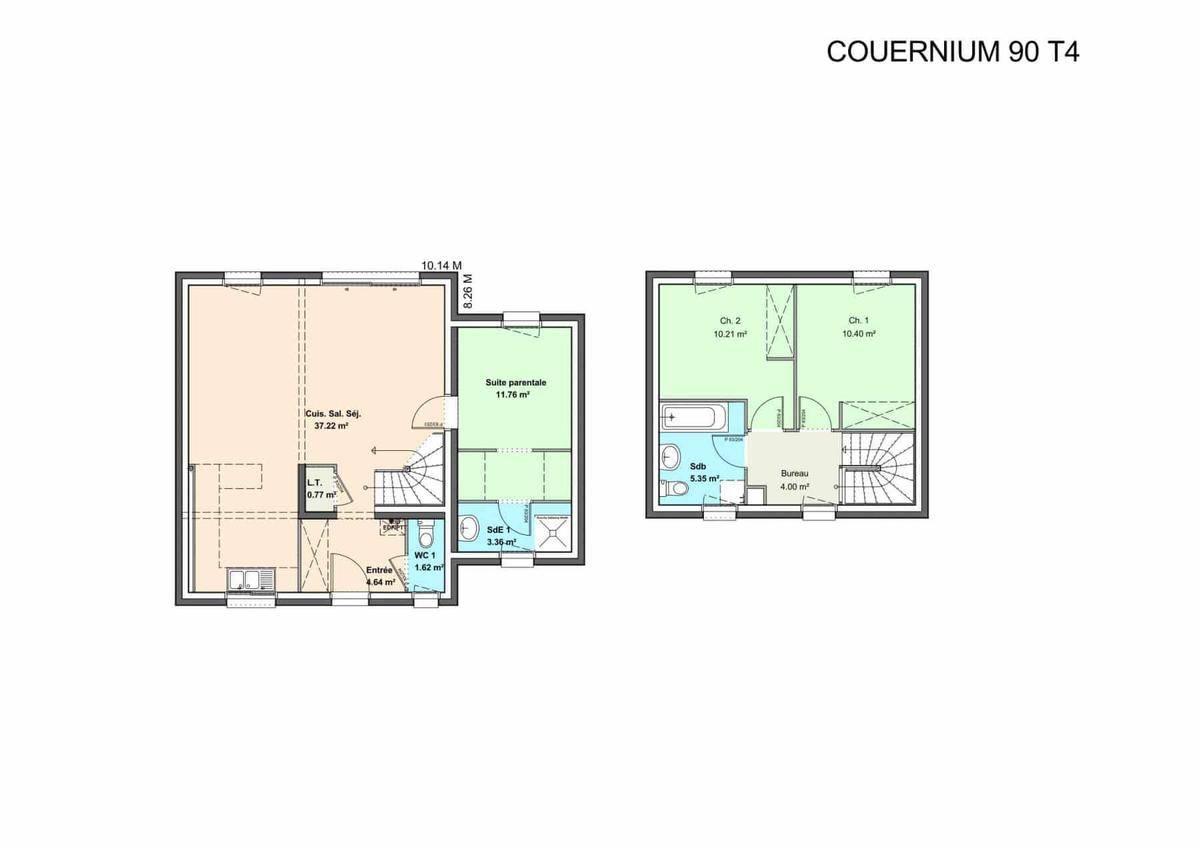 TERRAIN ET MAISONSur ce terrain, nous vous proposons une maison contemporaine pensée pour le bien-être de toute la famille. Avec ses 90,57 m² de surface habitable et ses espaces lumineux cette maison à étage est idéale pour ceux qui recherchent un cadre de vie agréable et fonctionnel.Un intérieur chaleureux et optimiséDès l’entrée, découvrez une belle pièce de vie de 37 m², spacieuse et lumineuse grâce à ses larges ouvertures donnant sur le jardin . L’espace salon-salle à manger se prolonge harmonieusement avec une cuisine ouverte, idéale pour partager des moments conviviaux.Le rez-de-chaussée accueille également une suite parentale confortable de 12,18 m², garantissant calme et intimité. Une salle d’eau moderne et des WC indépendants complètent ce niveau.Un étage conçu pour la familleÀ l’étage, deux chambres de 10,70 m² et 10,74 m² offrent un espace de vie agréable pour les enfants ou les invités. Une grande salle d’eau de 5,56 m² ainsi qu’un palier pouvant être aménagé en coin bureau ou espace détente complètent ce niveau.Sur cette version, un garage peut être ajouté en option.* Prix indiqué hors branchements, hors sanitaires, hors revêtement des sols et des murs. Assurance dommages ouvrages incluse.