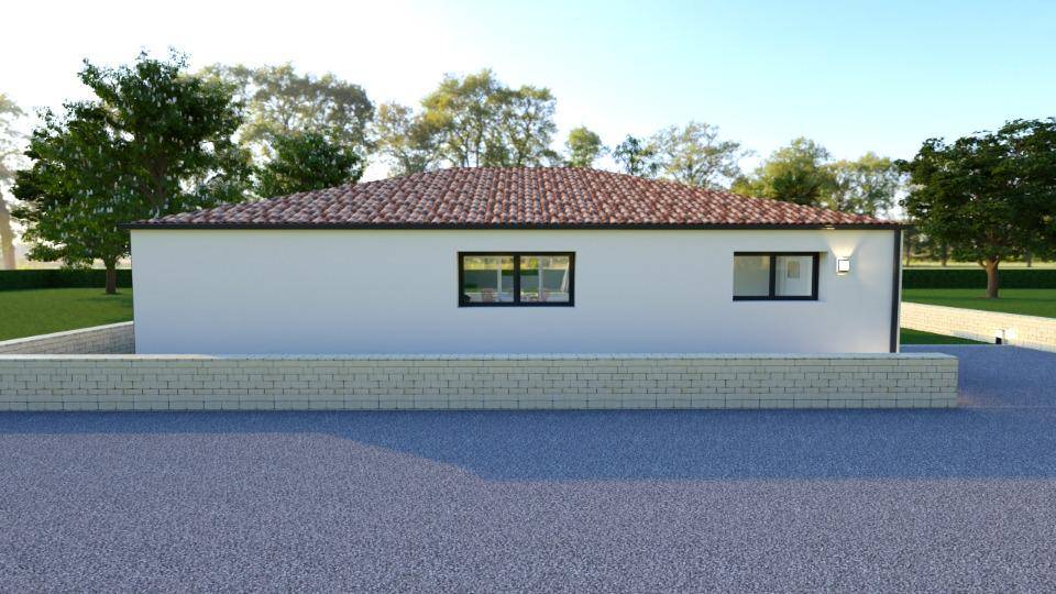 Conçue de plain-pied, elle propose trois chambres, une cuisine et une salle de bains. Cette maison est neuve.