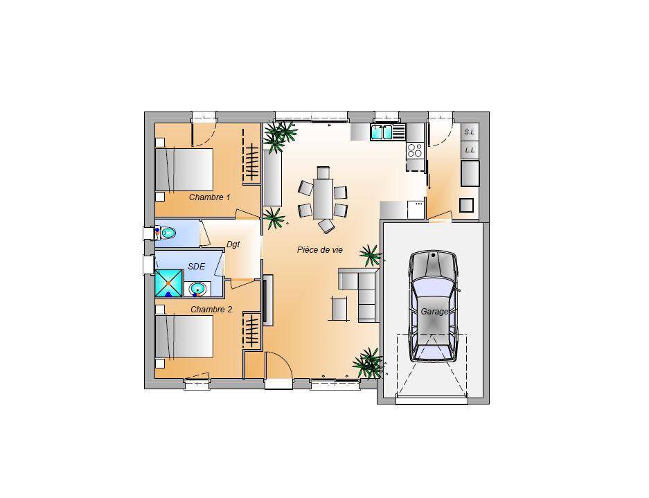 TERRAIN ET MAISONSur ce terrain, nous vous proposons cette superbe maison de plain-pied, alliant confort, modernité et praticité, idéale pour une famille en quête de bien-être.Avec son agencement optimisé, cette maison vous offre une spacieuse pièce de vie baignée de lumière naturelle, comprenant un séjour convivial et une cuisine ouverte fonctionnelle, parfaite pour des moments en famille ou entre amis.L’espace nuit se compose de trois belles chambres offrant confort et sérénité, d’une salle d’eau moderne et de WC séparés pour plus de praticité.Un garage intégré vient compléter ce bien, idéal pour stationner un véhicule ou disposer d’un espace de rangement supplémentaire.