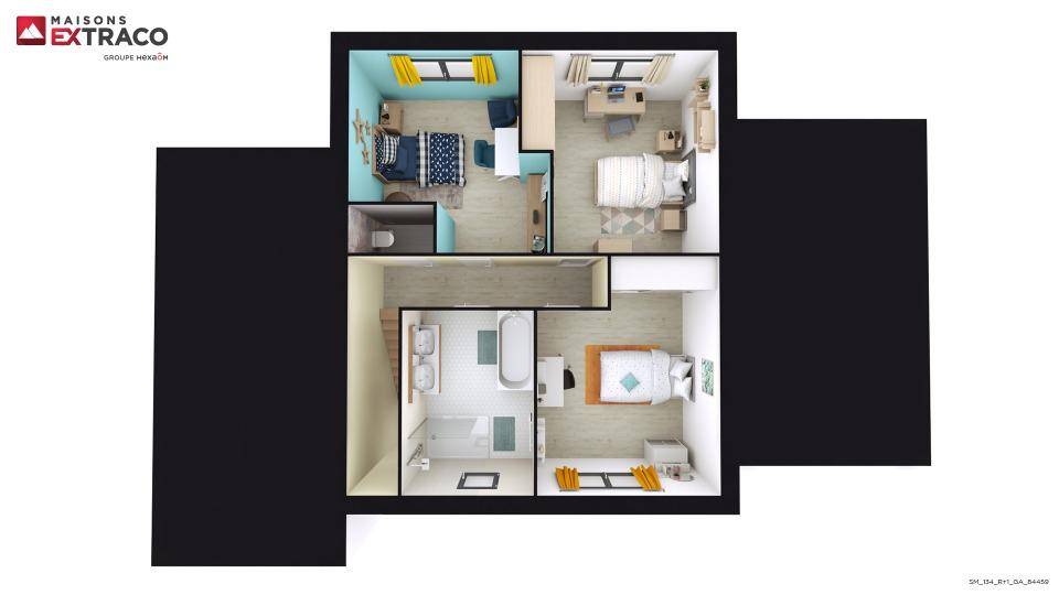 Il s'agit d'une maison de 2 niveaux. Elle compte quatre chambres, une cuisine et deux salles de bains. La maison est neuve.