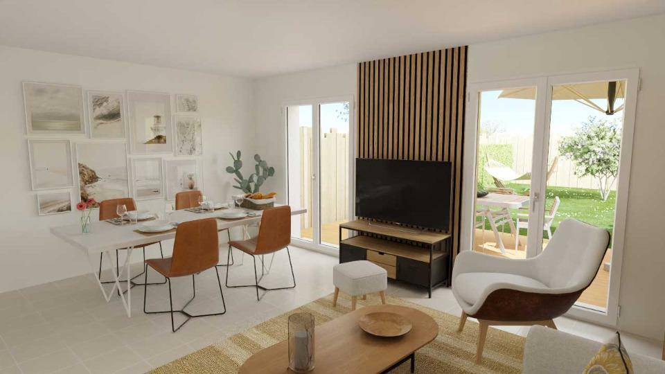Paris à 15 min (RER A, Sartrouville) - Maison neuve 4 pièces à vendre idéalement située dans Montesson (78360) avec 2 niveaux, une surface de 87 m² et de 300 m² de terrain. Son intérieur se divise en trois chambres, une cuisine et une salle de bains. Vue sur un espace vert.