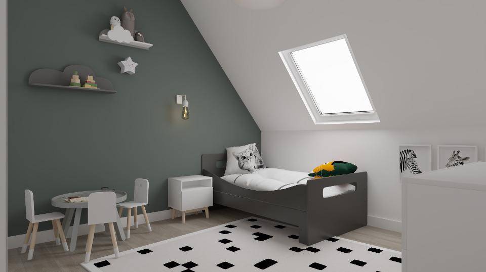 Cette maison est de plain-pied. Elle inclut trois chambres, une cuisine et une salle de bains. Cette maison est neuve.