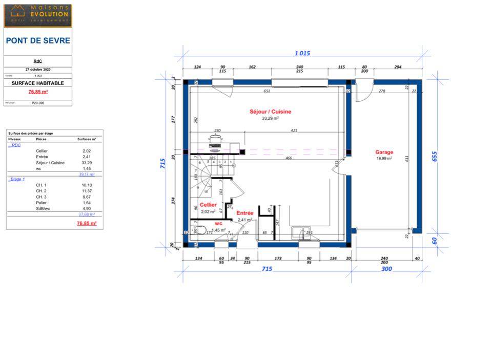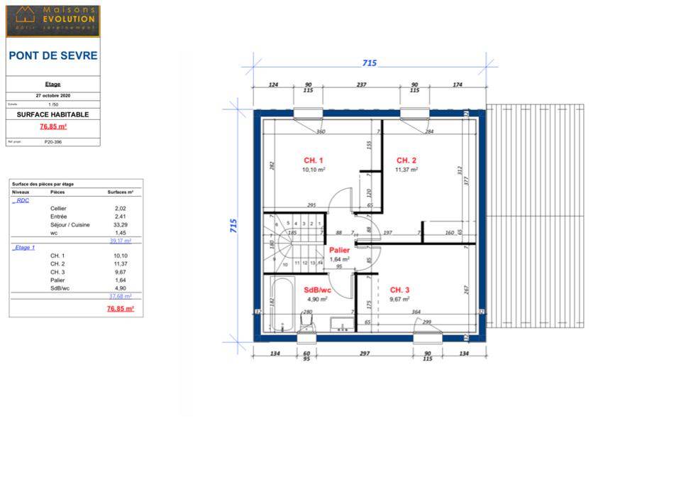 Au rez-de chaussée, vaste espace jour avec garage attenant. A l'étage, trois chambres et une salle d'eau. L'ensemble du design, des équipements et le mode de chauffage personnalisables à l'envi : voilà ce que vous propose PONT DE SÈVRES, maison R+1 de Maisons Evolution. Conçue pour s'adapter aux environnements urbains, cette demeure compacte de 74 m² peut être agrémentée par une terrasse. Effet Wahou garanti pour cette demeure.