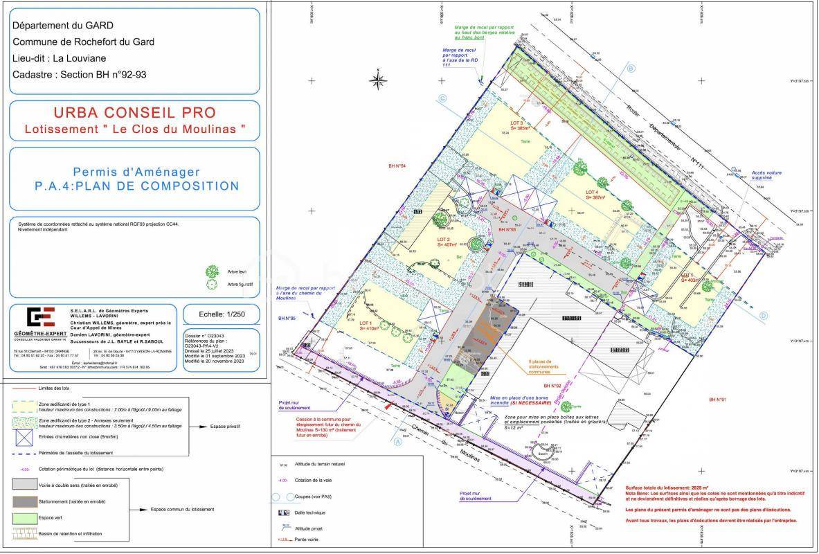 Le Clos Du Moulinas -Projet Immobilier de 5 lots viabilisés - Rochefort Du Gard (30650) - Lot N°2 à vendre 407 M2 , Piscinable , Emprise au Sol 170M2 - Proche du Village