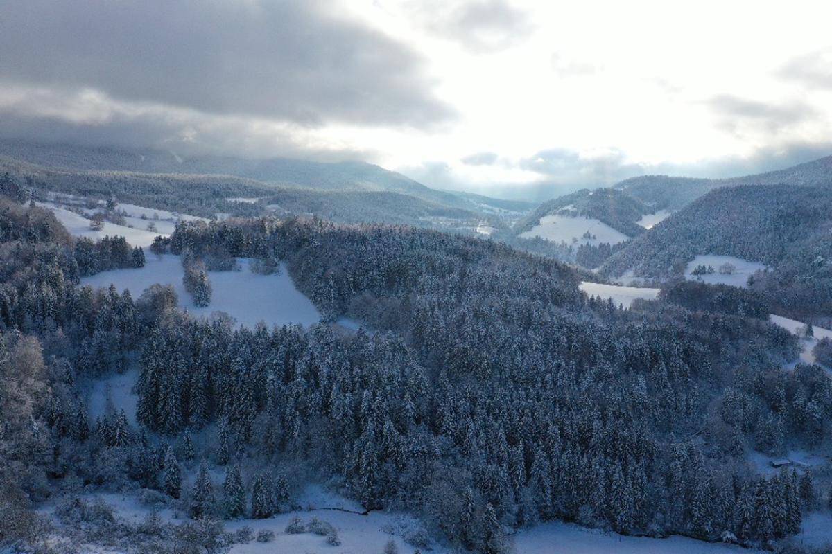 Le terrain prévoit également un local à vélos et à skis, un abri pour voiture, une terrasse extérieure de 26 m² et un balcon, idéal pour profiter du cadre et des paysages environnants.