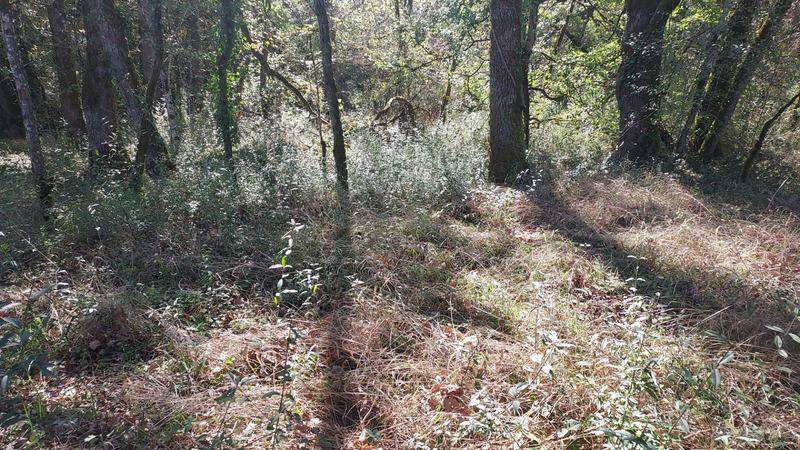 Blotti en retrait d'une petite route d'accès, ce terrain est actuellement constitué d'un bois de chênes.