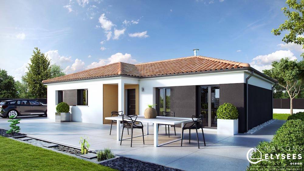 TERRAIN ET MAISONSur ce terrain, nous vous proposons cette maison neuve, le modèle Mezia, construite par Elysees Ocean, reconnu pour ses excellents avis clients dans la profession. Une très belle maison design et accessibleAvec une surface de 98 m², cette maison Mezia dispose de 3 chambres et d’une pièce de vie spacieuse. Son porche d’entrée généreux flatte l’œil et accueille le visiteur à l’abri. Le grand séjour, ouvrant sur plusieurs façades, garantit lumière et chaleur tout au long de la journée. Idéale pour les terrains peu profonds, cette maison est très appréciée des primo-accédants grâce à son excellent rapport qualité-prix.Une maison personnalisableNotre maison Mezia est proposée dans 6 plans différents afin de vous permettre de construire une maison sur-mesure au prix d’une maison catalogue. Parmi les caractéristiques principales, vous trouverez un garage intégré, parfait pour protéger votre véhicule et offrir un espace de rangement supplémentaire.Les options les plus demandées par nos clients incluent des menuiseries en aluminium et un système de domotique pour un confort optimal. Cette maison neuve est basse consommation et conforme à la réglementation environnementale RE2020, vous assurant ainsi des économies d’énergie et un respect de l’environnement.Ne manquez pas cette opportunité unique de devenir propriétaire d’une maison moderne, économique et personnalisable avec Elysees Ocean. Contactez-nous dès aujourd’hui pour plus d’informations et pour planifier une visite du terrain.
