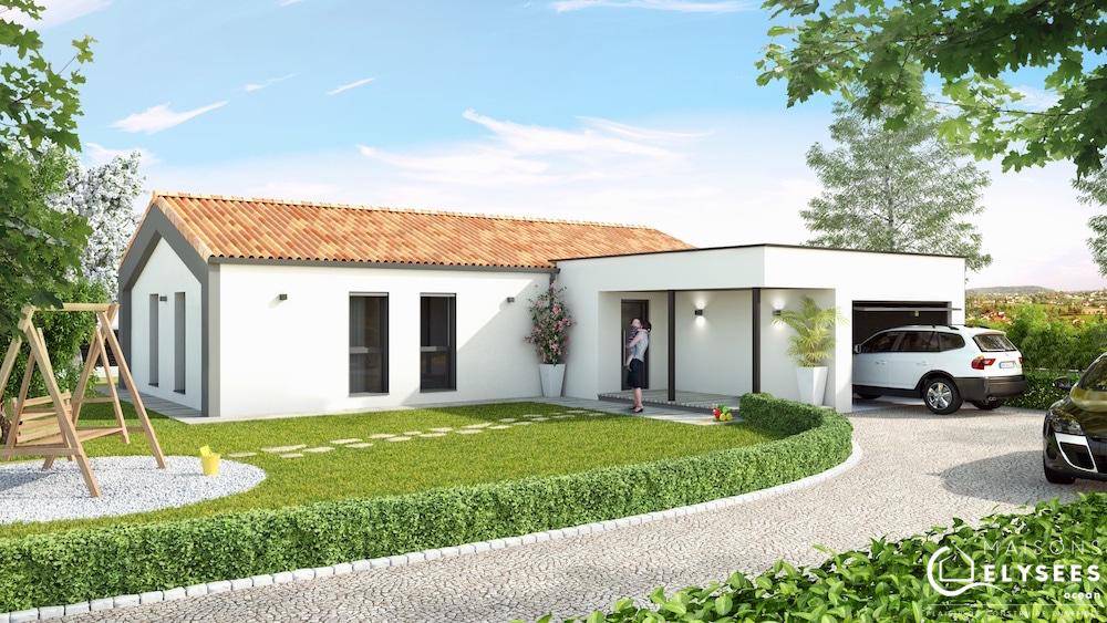 TERRAIN ET MAISONSur ce terrain, nous vous proposons cette maison neuve, le modèle Mezia, construite par Elysees Ocean, reconnu pour ses excellents avis clients dans la profession. Une très belle maison design et accessibleAvec une surface de 98 m², cette maison Mezia dispose de 3 chambres et d’une pièce de vie spacieuse. Son porche d’entrée généreux flatte l’œil et accueille le visiteur à l’abri. Le grand séjour, ouvrant sur plusieurs façades, garantit lumière et chaleur tout au long de la journée. Idéale pour les terrains peu profonds, cette maison est très appréciée des primo-accédants grâce à son excellent rapport qualité-prix.Une maison personnalisableNotre maison Mezia est proposée dans 6 plans différents afin de vous permettre de construire une maison sur-mesure au prix d’une maison catalogue. Parmi les caractéristiques principales, vous trouverez un garage intégré, parfait pour protéger votre véhicule et offrir un espace de rangement supplémentaire.Les options les plus demandées par nos clients incluent des menuiseries en aluminium et un système de domotique pour un confort optimal. Cette maison neuve est basse consommation et conforme à la réglementation environnementale RE2020, vous assurant ainsi des économies d’énergie et un respect de l’environnement.Ne manquez pas cette opportunité unique de devenir propriétaire d’une maison moderne, économique et personnalisable avec Elysees Ocean. Contactez-nous dès aujourd’hui pour plus d’informations et pour planifier une visite du terrain.