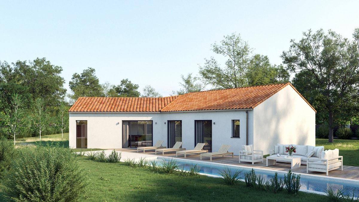 TERRAIN ET MAISONSur ce terrain, nous vous proposons cette maison neuve : le modèle Aria, conçu par Elysees Ocean, le constructeur aux meilleurs avis clients de la profession.Un pavillon familial et designNotre modèle Aria est une superbe maison avec un plan en V, offrant une surface de 104 m². Elle se compose de 4 chambres et de 4 pièces, dont une grande pièce de vie avec cuisine ouverte et un espace nuit comprenant une suite parentale. Le plan en V permet une très bonne exposition, offrant à la maison des caractéristiques bioclimatiques, se traduisant par une luminosité optimale et des économies d’énergie grâce à la réduction des besoins de chauffage.Un plan favorisant les économies d’énergieCette maison neuve est basse consommation et conforme à la RE2020, garantissant des performances énergétiques exceptionnelles. Les menuiseries en aluminium, option très demandée par nos clients, ajoutent une touche de modernité et d’efficacité énergétique à l’ensemble.Le modèle Aria inclut également un garage, offrant un espace de rangement supplémentaire et une protection pour votre véhicule.Ne manquez pas cette opportunité unique de devenir propriétaire d’une maison neuve, design et économe en énergie, construite par Elysees Ocean, le constructeur de confiance avec les meilleurs avis clients de la profession. Contactez-nous dès aujourd’hui pour plus d’informations et pour planifier une visite du terrain.